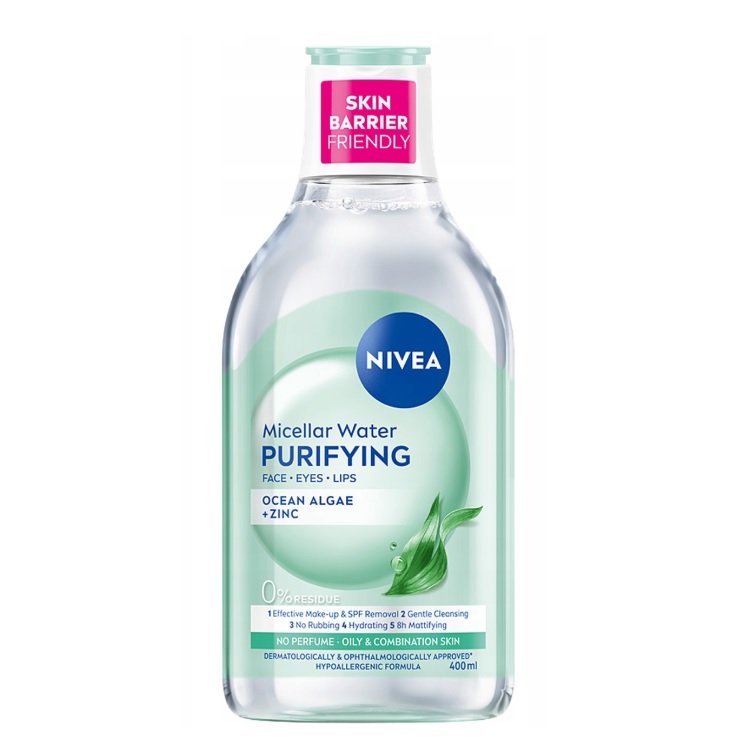 Pokochaj naturalnie czystą skórę! Oczyszczający Płyn Micelarny NIVEA z kompleksem aminokwasowym i algami oceanicznymi delikatnie, a jednocześnie skutecznie usuwa makijaż, zanieczyszczenia i nadmiar sebum. Formuła z micelami oczyszcza skórę w zaledwie kilka lekkich pociągnięć wacika, bez pocierania, pozostawiając cerę świeżą, matową i zregenerowaną.