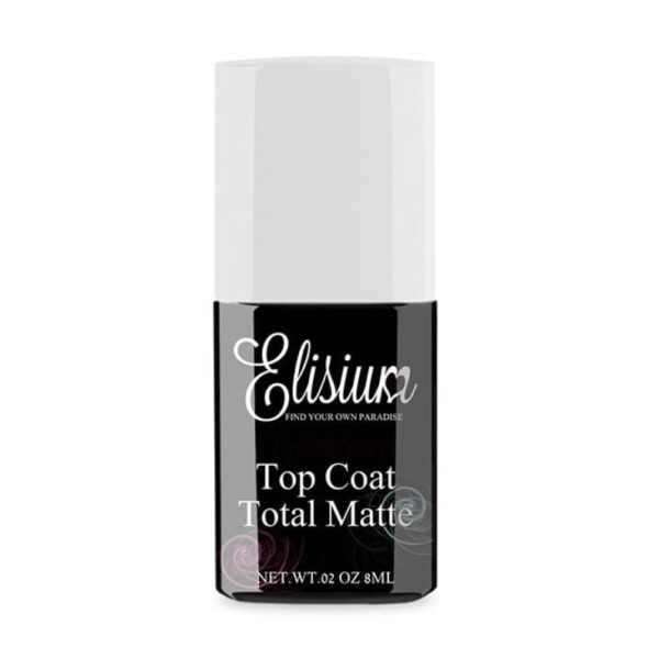 Bezbarwny top nadający mat Top Coat Total Matte od marki Elisium. Nowoczesna formuła nie pozostawia lepkiej warstwy depresyjnej, dzięki czemu w szybki i prosty sposób wykończy hybrydowe stylizacje. Dodatkowo zabezpieczy kolor przed blaknięciem i nada matowe wykończenie.
