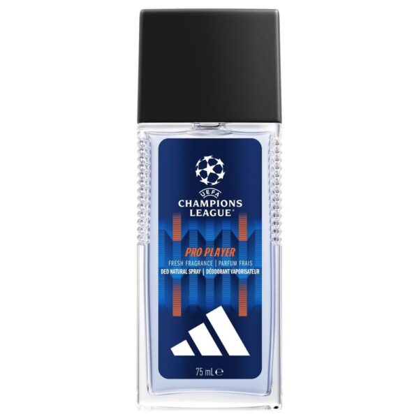 Naturalny dezodorant w sprayu adidas UEFA Champions League PRO PLAYER Edition łączy w sobie świeżość, długotrwałą ochronę i piłkarskiego ducha. Inspirowany grą zawodnika, którego każdy ruch to arcydzieło, oferuje świeży zapach z naturalnymi olejkami eterycznymi z czarnego pieprzu i nutami lawendy. Korzenna, aromatyczna kompozycja jest odpowiednia dla wegan i przetestowana dermatologicznie.